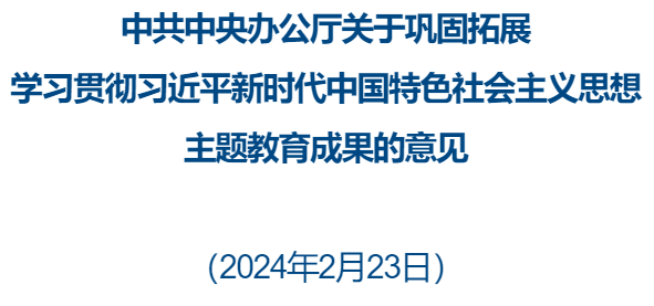 中共中央办公厅关于巩固拓展学习贯彻习近平新时代中国特色社会主义思想主题教育成果的意见