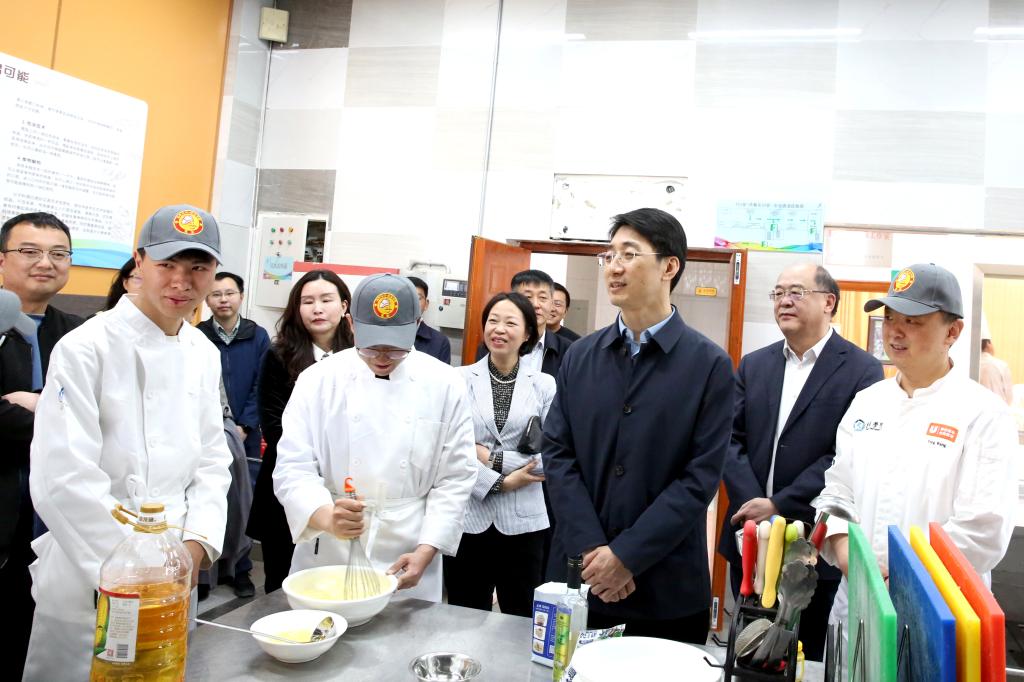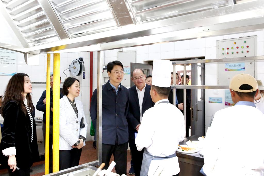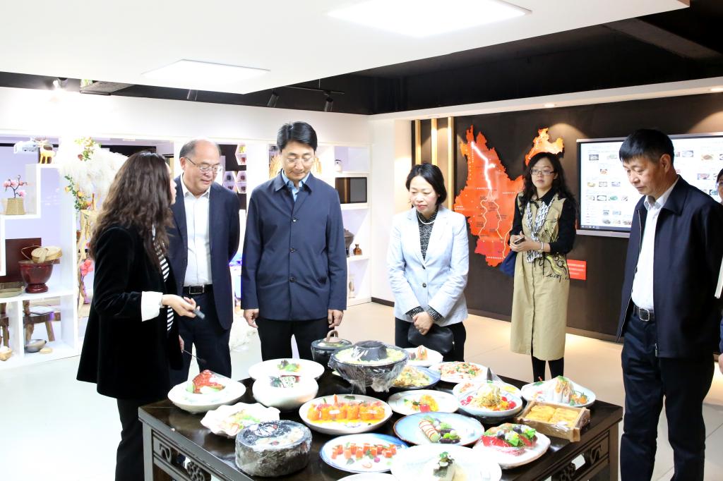 王云霏一行深入现代旅游餐饮产业学院,参观滇菜数据库及滇菜食材展示中心、数字化烹饪智慧教室及大师工作室,了解学院发展现状及建设规划,听取滇菜研发相关介绍,深入了解现代旅游餐饮产业学院在学科专业建设、人才培养、校企合作等方面情况,并与师生亲切交谈。