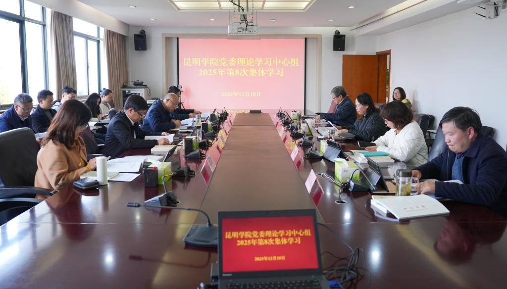 12月18日,昆明学院党委理论学习中心组开展2025年第8次集体学习,学习研讨习近平法治思想和习近平总书记关于加快建设教育强国的重要论述,强化“依法治校、依法治教”意识,加快推进教育现代化、建设教育强国、办好人民满意的教育。会议由学校党委副书记、校长丁文丽主持。