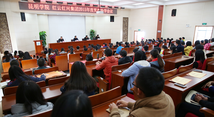 1月7日,昆明学院和红云红河集团昆明卷烟厂在学校办公楼D区三楼报告厅举行颁奖仪式,表彰、奖助2015年度“红云园丁奖”“红河助学金”奖教助学金获奖师生,鼓励在教学、科研、管理等各项工作中做出突出贡献的教职工,资助家庭经济困难、学习刻苦的优秀学生,对140名师生进行奖励和资助,总金额达60万元。