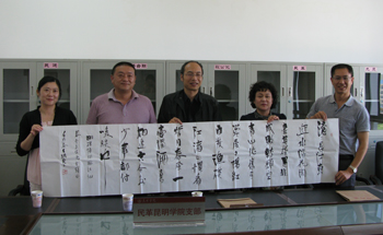 沈部长向来宾详细介绍了我校统战工作情况和民革昆明学院支部的组织发展以及活动开展情况,并向朱主委提交了我校统一战线名册。