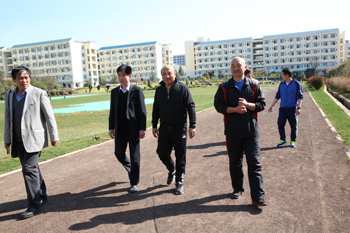 教练组成员在郑克刚助理及赵平院长等人陪同下,实地察看了我校学员住宿、食堂、体育运动场馆设施情况。