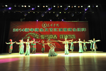 接下来的文艺演出,由学校教职工,各院系师生以及大学生艺术团表演的节目精彩纷呈。人文学院的配乐朗诵《爱在洋浦》、教职工代表表演的歌伴舞《夜月倾诉》、留学生代表表演的民族舞蹈《老挝风情》、体育学院的体育舞蹈《春天的节拍》等精彩的表演一次次将演出推向高潮,最后,在大学生艺术团表演的《走进春天》后本次活动圆满落幕。整场活动充分展示了全校师生昂扬向上、团结奋发的精神风貌,在新的一年来临之际,为全校师生献上了一份温馨的新年祝福。