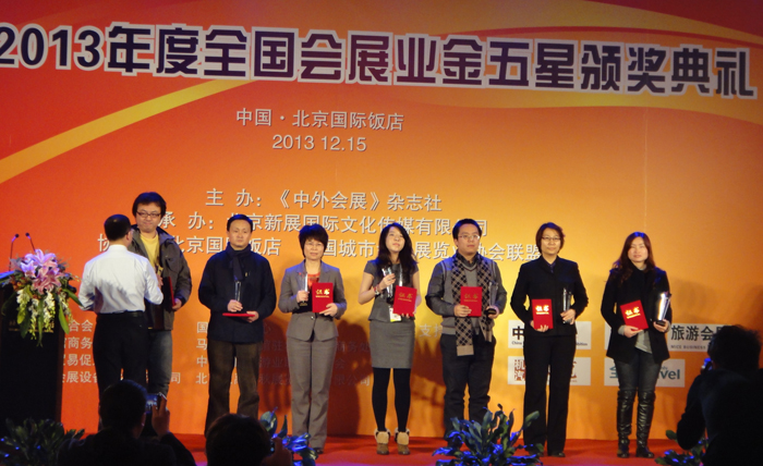 2013年12月,EPFIC 2013 -- 第三届中外会展项目合作洽谈会在北京国际饭店举行,各国驻华使馆、商会、贸易促进局、国内外会议展览活动的政府管理职能部门和机构参加了此盛会。旅游学院田芙蓉副院长、会展教研室主任刘红老师、办公室主任刘艳萍老师参加了会议。会上同期举行了2013年度会展业金五星颁奖典礼。此次会议设立了“优秀会展城市奖”、“最具潜力会展城市奖”、“ 优秀会展教育机构奖”等15个奖项,我校旅游学院荣获“2013 金五星——优秀会展教育机构奖”,全国院校只有6所院校获此殊荣。