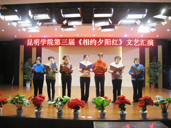 11月19日,虽然天气寒冷,充满凉意,但美丽的金山生态园里却锣鼓喧天,洋溢着喜庆的气氛,由离退休党总支、离退休工作处组织的昆明学院离退休教职工第三届“相约夕阳红”文艺汇演在这里隆重举行。来自十五个支部的近250名演员和观众,欢聚一堂,共同度过一段难忘的美好时光。