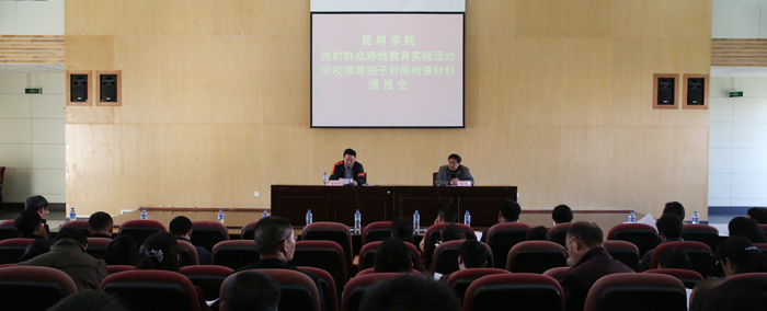 通报会首先由学校党委副书记、党的群众路线教育实践活动领导小组副组长孙勇通报学校领导班子党的群众路线教育实践活动对照检查材料。孙副书记通报说,学校开展教育实践活动以来,学校党委先后进行了2次大范围的意见征求,召开各层次、各类别座谈会20余次,发放调查问卷230份、函询上级及对口单位13个,书面调查用人单位20家,学生家长180人,“背靠背”个别征求教职工代表意见47人,原汁原味梳理意见建议262条,汇总归并形成意见建议181条,学校党委主要领导与班子成员之间、班子成员相互之间、班子成员与分管部门负责人之间深入开展交心谈心活动30余次。在深入学习教育、广泛听取意见的基础上,起草对照检查材料,多次与督导组交换意见,党委会议多次讨论审议,反复修改完善,形成了昆明学院党委班子党的群众路线教育实践活动对照检查材料。