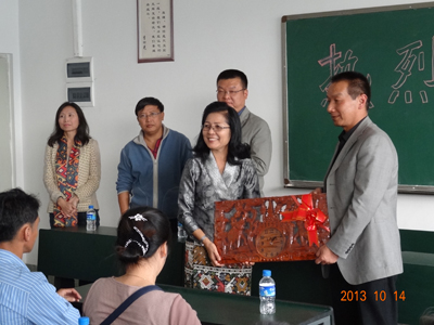 仪式最后,Keomanivong Phimmasene代表老挝国立大学向我校赠送纪念品。