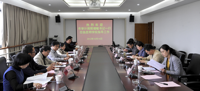 在今年4月24日学校与昆明市审计局签署合作框架协议后,为进一步推进双方的深入合作,10月14日下午,昆明市审计局党组书记郭增敏、机关党委书记后文杰、副局长易迎霞等一行8人赴我校就政校合作事宜进行了友好的会谈。副校长熊晶及监察审计处、昆明滇池(湖泊)污染防治合作研究中心办公室、工会、经济学院等部门负责人参加会议。会议由熊晶副校长主持。