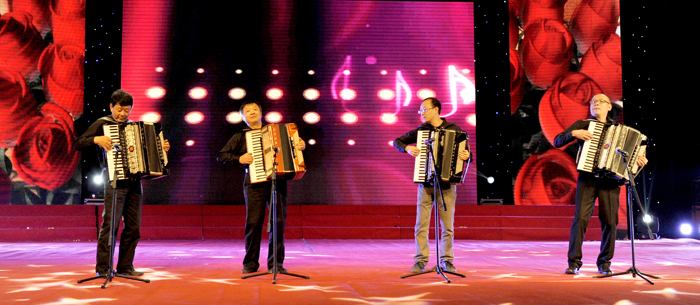 昆明福保集团表演大型舞蹈《幸福金秋》、舞蹈 《乡村美》;官渡区幼儿园表演舞蹈《亲情》;云南官房地基基础有限公司表演合唱《建筑工人之歌》;中铁大型养路机械集团有限公司表演快板《跨越》、合唱《没有共产党就没有新中国》《铁道兵志在四方》;昆明学院表演手风琴合奏《滇池圆舞曲》、组合《木叶轻轻吹》、歌伴舞《月夜倾诉》、协奏《春江花月夜》、女高音独唱《爱在云之南》、体育舞蹈《燃烧的地板》、大型歌舞《青春宣言》。