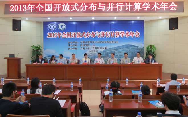 2013年全国开放式分布与并行计算学术年会于8月16日至18日在我校成功召开。本次会议由中国计算机学会开放系统专业委员会主办,昆明学院承办,云南大学、云南民族大学协办。会议开幕式由昆明学院信息技术学院院长王震江教授主持。
