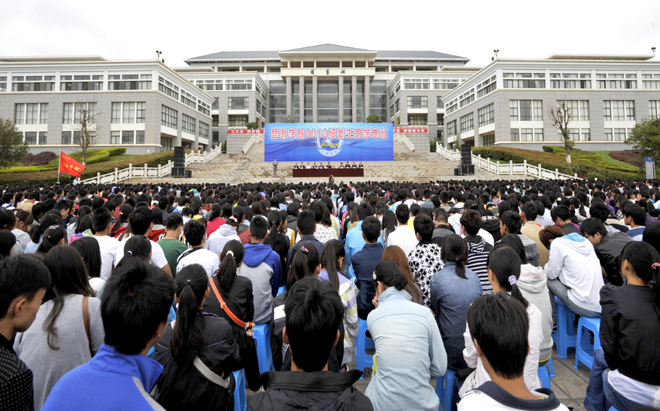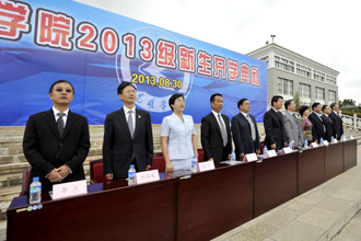 8月30日上午,我校在聂耳广场隆重举行了2013级新生开学典礼。全体校领导、中层干部、辅导员、班主任和2013级新生参加了典礼。典礼由党委书记陈世波主持。党委副书记、校长蒋永文讲话,寄予新生殷切希望。