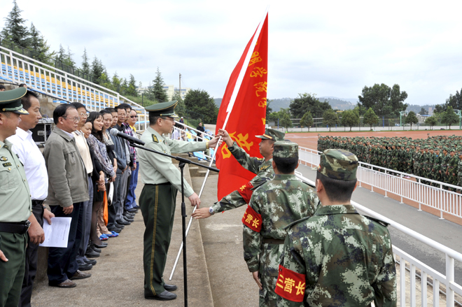 最后,在《中国人民解放军军歌》中,李荣部长宣布昆明学院2013级新生军事训练开训。