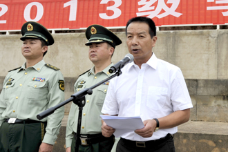 9月2日上午,我校在田径运动场举行2013级学生军训动员大会。武警边防部队士官学校训练部部长李荣,我校国防教育委员会副主任、副校长李翔及两校相关职能部门的领导、我校各院(系)党总支副书记、带队辅导员、全体承训官兵和2013级4815名参训同学参加了动员大会。大会由李翔副校长主持。