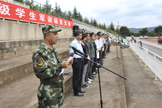 动员大会在雄壮的国歌声中拉开了序幕,武警边防部队士官学校李荣部长向军训团授旗。2013级军训团许文团长向全体参训人员宣读了学生军训管理规定,对参训教官和同学提出要求。我校信息技术学院2013级计算机科学与技术专业的李云博同学代表全体参训学生在大会上作了发言,表示将服从军训的各项规章制度,严格要求、严格训练,以坚忍不拔、毫不松懈、永不服输的军训精神圆满完成本次军训任务。