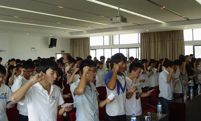 启动仪式上,医学院团总支书记郎易,经济学院学生志愿者程学凡分别代表参加社会实践服务团的师生发言。随后,学校党委副书记孙勇为志愿者服务代表授旗,学校团委组织部部长沈嘉带领本次“三下乡”活动的全体志愿者宣誓。