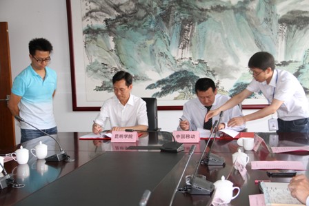 最后,学校副校长刘海发和中国移动云南有限公司昆明分公司总经理黄蜀云签订了合作协议。