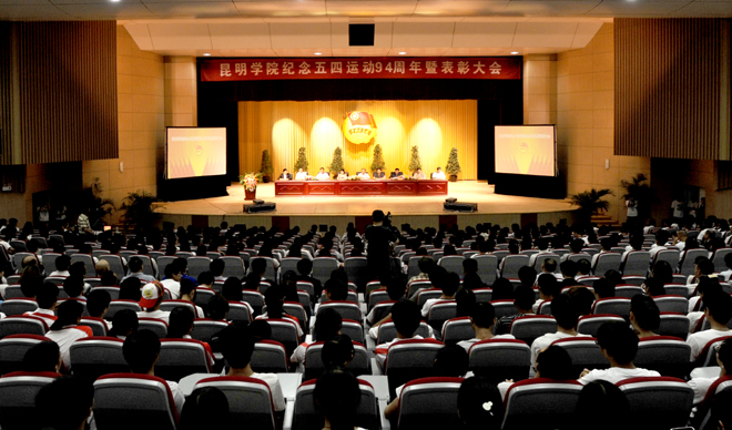昆明学院纪念五四运动94周年暨表彰大会在嘹亮激昂的中国共产主义青年团团歌中圆满结束。