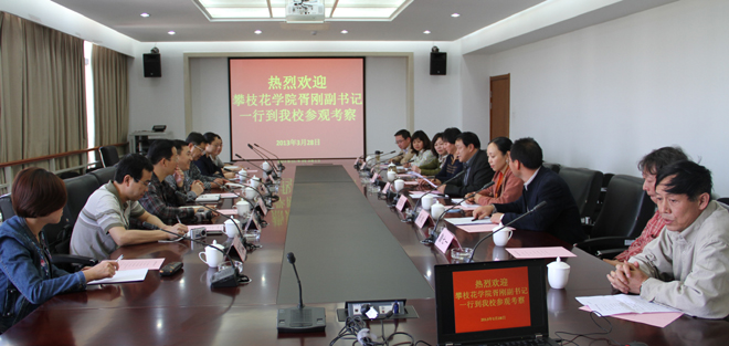 孙勇副书记首先代表学校欢迎攀枝花学院胥刚副书记一行到我校考察交流。他全面介绍了学校概况、干部人事制度、教育教学改革、学科专业建设、人才培养、产学研合作、实践教学及服务地方经济社会等改革发展情况。