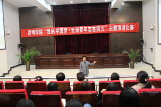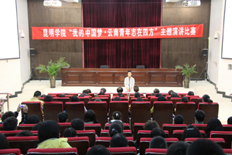 4月12日下午,昆明学院“我的中国梦•云南青年志在四方”主题演讲比赛在惟真楼模拟法庭举行。本次主题演讲比赛是为了深入学习宣传贯彻党的十八大精神,全面贯彻党的教育方针,围绕立德树人根本任务,深入开展中国特色社会主义宣传教育,引导广大学生为实现国家富强、民族复兴、人民幸福的伟大中国梦而发奋学习、不懈奋斗而举办的。比赛由学生工作部(处)主办,社会管理学院承办。