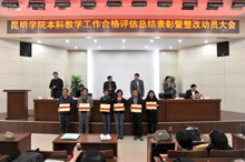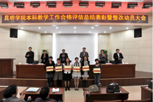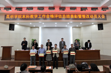 孙勇副书记宣读《昆明学院关于表彰迎评促建工作先进奖获得者的决定》,沈艳萍等173名教职员工获得表彰。