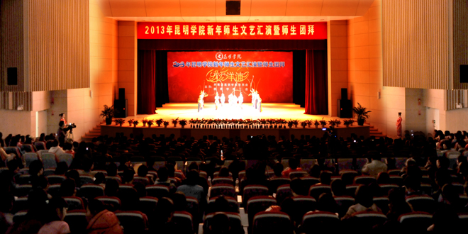 为迎接2013年新年的到来,丰富校园文化生活,展现师生风采,凝聚爱校精神,执此辞旧迎新之际,由学校团委、学校工会联合主办的“我爱洋浦”新年师生文艺汇演暨师生团拜活动于12月28日在学生会堂隆重举行。
