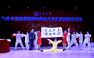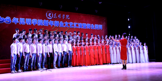 接下来的文艺演出上,由学校教职工,各院系学生以及学生社团联合会、大学生艺术团表演的节目精彩纷呈。大学生艺术团的舞蹈《新禧俏花灯》、我校留学生代表的歌舞表演《昆明欢迎你》、跆拳道协会表演的《胜之道》、教职工代表的乐器合奏《咆哮的风箱》、旅游学院带来的花样调酒《金蛇生瑞》等精彩的表演一次次将活动推向高潮,最后,节目在由美艺学院彭善秀教授作词、音乐学院李颖玲副教授作曲并指挥、音乐学院、教师教育学院、美艺学院学院学生共130人组成的大合唱《昆明学院,我要为您图强》歌声中圆满落下帷幕。