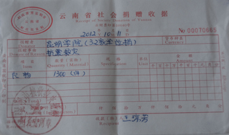 根据《中共昆明学院委员会办公室〈关于转发中共云南省委办公厅云南省人民政府办公厅关于做好“彝良9.7”地震抗震救灾有关工作的紧急通知〉(党办通〔2012〕44号)的通知精神,在学院各党总支、直属党支部和机关各支部的认真组织下,学校广大教职工充分展现了中华民族“一方有难、八方支援、团结互爱、互助互济、无私奉献”的传统美德,积极参加到学院向“彝良9.7”地震抗震救灾捐款的活动中。截止10月11日,全院教职工共计捐款:60715元(陆万零柒佰壹拾伍元整),捐衣物1300件。款、物已上交到昆明市接收救灾捐赠办公室。