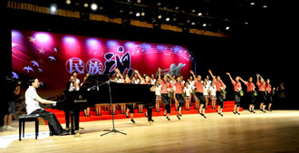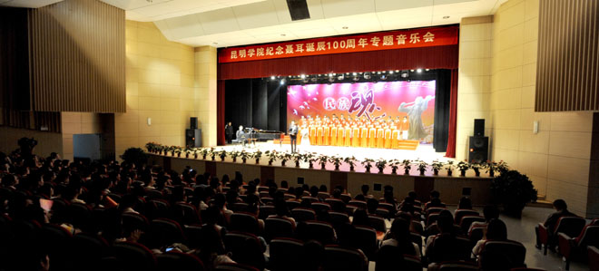 为了纪念我校知名校友、人民音乐家、中华人民共和国国歌《义勇军进行曲》的作者聂耳诞辰一百周年,昆明学院于6月29日晚在学生会堂隆重举行“民族魂—纪念聂耳诞辰100周年音乐会”。学校党委副书记、纪委书记李媛芬,部分中层干部和师生共1300多人观看了音乐会。参加演出的主要有音乐学院、教师教育学院的师生和学校大学生艺术团的同学。
