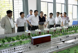 我校党委书记梁晓谷,校长陈世波,副校长张寿国、董建华等领导在校门前迎候来宾,并陪同来宾参观了我校音乐学院、学生会堂、美术与艺术设计学院、轨道交通实验室、烹饪实验室、师生食堂、学生宿舍区。在参观中,梁书记、陈校长分别向来宾介绍了我校近几年来的建设发展及校园规划建设情况。