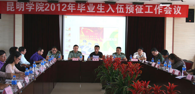 6月4日,我校在办公楼502会议室召开“2012年毕业生入伍预征工作会议”。副校长李翔,省军区征兵办王参谋和官渡区武装部领导出席会议。学校招生就业处、相关职能部门负责人和各教学院(系)党总支书记、副书记及就业创业指导中心全体工作人员参加了会议。招就处吴晓柏副处长主持会议。