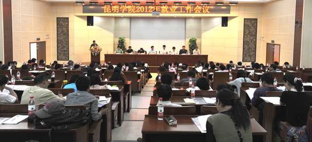 首先,李翔副校长代表学校对2011年就业工作进行了回顾、总结和分析,全面部署2012年就业工作任务。李副校长在回顾去年就业工作时说,在学校党委、行政的正确领导和全校师生的共同努力下,2011年我校毕业生就业工作取得显著成效,并荣获“云南省2011年高校毕业生就业工作目标责任考核一等奖”、“云南省2011年高校毕业生创业先进集体”、“云南省高校毕业生创业示范基地”。在总结和分析就业工作时提出五方面的体会和经验:1.坚持落实就业工作“一把手”工程;2.加强内涵建设,提高人才培养质量;3.狠抓重点工作,推进就业工作取得成效(三项重点:入伍预征工作、大学生自主创业工作、帮扶“双困”毕业生和少数民族毕业生就业);4.积极拓展就业市场,加强合作,为大学生就业提供广阔平台;5.健全队伍,强化指导,为大学生就业提供优质服务。同时指出了学校就业工作存在的问题。 李副校长在安排部署2012年就业工作时明确要求:以高度的责任心和使命感,全力以赴做好2012届毕业生就业工作,紧紧围绕学校既定的“1237”的工作思路,本着“稳定、提高、拓展”的工作原则,积极采取有效措施,以提升学校综合实力为核心,以提高人才培养质量为根本,以学校提出的人才培养模式为基本规格,坚持以人为本,坚持提高学生的综合素质,加强毕业生的就业创业指导,为地方经济社会发展培养和输送高素质应用型人才。