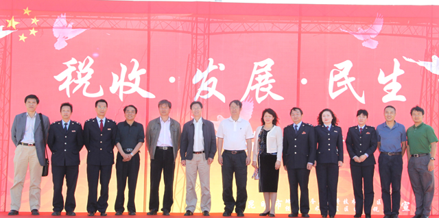 4月14日上午,由昆明经开区地税局和国税局联合在我校聂耳广场举行了一场主题为“税收•发展•民生”的“税收宣传月”专题活动,活动通过展板、文艺表演、有奖问答等多种形式给我校学生上了一堂生动的“税收教育课”。这是昆明地税系统首次针对大学生进行税收宣传。 经开区管委会党工委副书记、纪委书记李刚,省地税局总经济师周权,昆明学院刘海发副校长,省地税局大企业处张荣慧处长、科技处左建明处长,市地税局工会李华主席,经开区地税分局张小兵局长,经开区国税分局王昆局长等领导出席活动,我校计划财务处处长陆志平、副处长王荣林和经济学院、社会管理学院等近千余名学生参加了宣传教育活动。