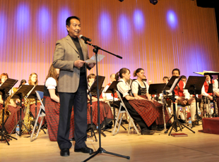 4月3日晚,“高雅艺术进校园系列活动——德国慕尼黑Eichenau管乐团昆明学院专场演出”在学生会堂成功举行。昆明学院副校长李翔,云南省教育厅体卫艺处副处长郭春慧,学校中层干部代表、全体辅导员、团总支书记、各院系师生代表共1600余人观看了演出。