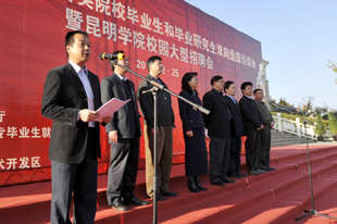 云南省高校工委副书记陶晴,省人才市场副主任王朝阳,省大中专毕业生就业服务中心主任方伟、副主任周舟,昆明市人才服务中心主任吴迪,中国移动通信集团云南有限公司副总经理李重宇,昆明学院党委副书记孙勇、副校长李翔等领导出席洽谈会启动仪式。参加启动仪式的还有昆明经济开发区人事劳动局、人才交流中心,昆明高新技术开发区人事劳动局人力资源中心等相关部门负责人,省内各高等院校招生就业处负责人,我校各院(系)领导、相关部门负责人及3000余名学生。