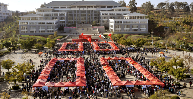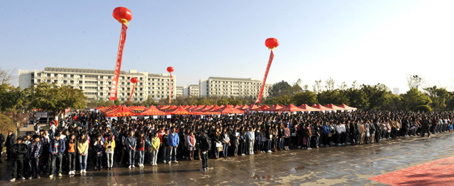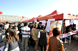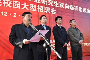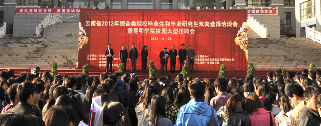 为使广大毕业生和用人单位有一个交流方便、沟通平等、“双向选择”的就业平台,促进我省2012届毕业生充分、顺利就业, 2月25日,由云南省教育厅主办、昆明学院、云南省大中专毕业生就业服务中心和昆明经济技术开发区共同承办的“云南省2012年综合类院校毕业生和毕业研究生双向选择洽谈会暨昆明学院校园大型招聘会”在我校聂耳广场隆重举行。
