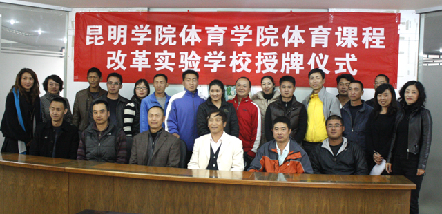 3月2日下午,在昆师路校区行政楼三楼会议室举行了昆明学院体育学院体育课程改革实验学校授牌仪式,授牌仪式上体育学院赵平院长与昆明五华、盘龙、西山、官渡四区的16所中小学的领导签署了实验协议,将这16所学校定为我院体育课程改革实验学校。此次活动的开展,是体育教育专业培养模式的改革与创新,不仅拓展了我院的办学思路,也为我院今后的体育教学实验、实习提供了保障。