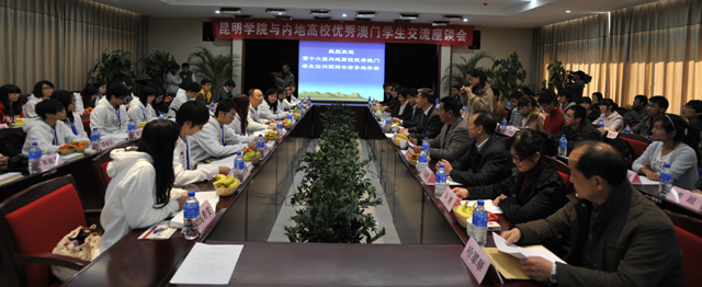 在随后举行的欢迎、交流座谈会上,云南省港澳办副主任何明生介绍了云南经济社会发展情况和滇澳教育合作现状及前景,并希望通过此次澳门学生来访,进一步推动滇澳教育深入合作与交流。团省委副书记、省青联主席陆平发表了热情洋溢的讲话,对内地高校优秀澳门学生的到来表示欢迎,并介绍了云南省的青年工作情况。他希望澳门学子与内地学子在文化的交流和友谊的传承中共抒爱国情怀,共谱友谊之曲,共谋发展之道。
