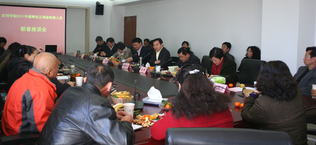 座谈会在亲切而热烈的氛围中进行。首先,各位新聘任正高职称人员畅谈了自己的成长经历、工作近况、研究方向、今后打算,并对学校教学、科研和管理等工作提出了意见和建议。大家纷纷表示:昆明学院的发展给自己提供了新的发展平台,学校已经驶入发展的快车道,短短几年时间取得如此大的成绩,让人倍感骄傲与自豪,对学校未来的发展更加充满信心。随着硬件设施的完备,内涵建设的深入,必将为老师们提供更加广阔的发展空间,搭建更好的干事创业舞台。大家将立足新起点,踏上新征程,借助学校的优良平台,加倍努力,开拓创新,为学校建设和发展进一步发挥好作用,做出更大的成绩。