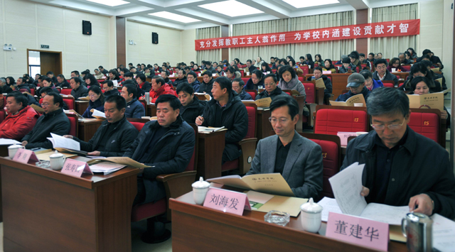 梁书记对学校工会今后一段时期工作提出要求。一要进一步提高加强教职工代表大会制度建设、加强学校民主管理重要性的认识。他强调,教职工代表大会制度是我国高校民主管理、民主监督的基本制度和有效形式。加强教职工代表大会制度建设, 健全民主管理和监督机制,是贯彻党的路线、方针、政策,实践“三个代表”重要思想的客观要求,是我国高校社会主义民主政治建设的重要内容,是紧紧依靠教职工办学、推进学校决策科学化、民主化的必然要求,是保障教职工行使民主权利、参与学校管理、充分发挥教职工积极性和创造性,投身学校建设、发展和改革的客观需要。切实加强教职工代表大会制度建设,发挥好教代会作用,对于学校深化内涵建设、实现科学发展,有着十分重要的作用。全校教职员工要充分认识加强教职工代表大会制度建设的重要性,各位代表要充分认识认真履行代表职责的重要性,切实发挥好教代会的作用。 二要充分发挥教代会和工会组织的作用,凝心聚力,围绕中心,在学校发展建设中建功立业。他指出,学校的建设发展,离不开全校教职员工的共同努力,离不开教代会和各级工会组织的积极工作。即将到来的2012年,是学校全面深入实施“十二五”发展规划的