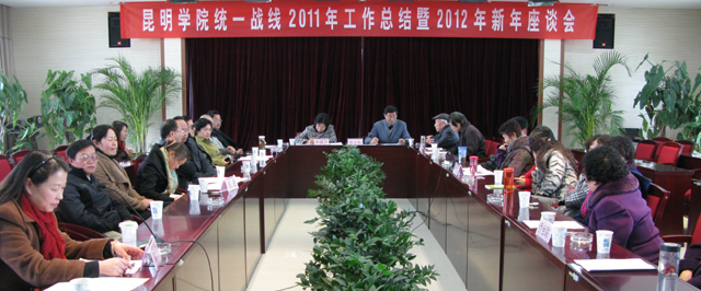 为认真总结我校统一战线2011年工作,交流各民主党派、侨台联基层组织工作经验,喜迎2012年新年,畅谈学校加快内涵建设实现跨越式发展取得的成绩。12月28日下午,昆明学院统一战线2011年工作总结暨2012年新年座谈会在行政办公楼502会议室召开,党委副书记李媛芬、党委统战部部长张云权、学校各民主党派、侨台联基层组织负责人及班子成员共30余人参加了会议。会议由张云权部长主持。