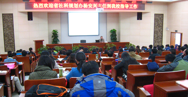 为了加强对我校教师申报国家级课题的指导,规范申报材料,提高申报质量,争取在2012年度国家社科基金申报中取得新的突破,科研处特别邀请省哲社规划办杨安兴主任到我校指导国家社会科学基金申报工作。会议由学校科研处王定康处长主持,相关院、系、部分管科研领导及符合申报条件的教师参加了会议。
