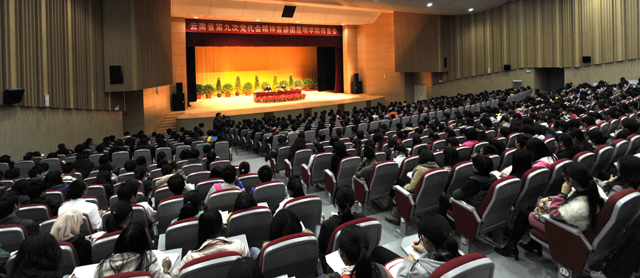 根据中共云南省委高校工委、云南省教育厅《关于认真做好中国共产党云南省第九次代表大会精神宣讲工作的通知》的要求,我校于12月29日下午在学生会堂组织举办了省第九次党代会精神宣讲报告会。 宣讲报告会邀请到省第九次党代会精神省委宣讲团成员、省高校工委宣讲团成员、省委宣传部副部长张瑞才同志主讲。我校全体校领导、中层干部,教职工党员和教师代表、思政课教师、学生党员代表、离退休党员代表和各民主党派代表约1400余人聆听了宣讲报告。宣讲报告会由校党委书记梁晓谷主持。