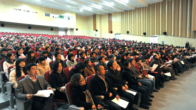 在2012年开年的1月5日上午,我校在学生会堂隆重召开2011年科研奖励大会,全体校领导出席奖励大会,学校全体中层干部、副高及以上职称的教师,博士、硕士学位获得者,获科研奖励全体教师,第二届青年学术科技作品竞赛获奖学生,各教学院(系)教师、团学干部和相关部门干部共计1300余人参加了奖励大会。大会由熊晶副校长主持。