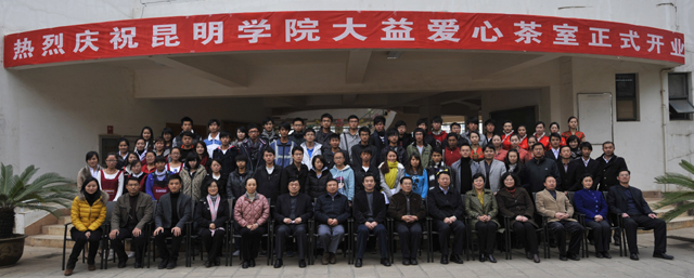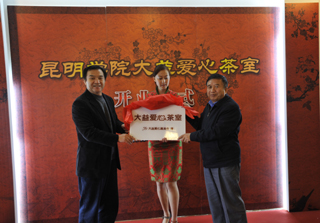 2011年4月,在大益茶业集团和学校领导的关心和支持下,在学校各职能部门的帮助下,学校团委开始筹建昆明学院大益爱心茶室。茶室由云南大益爱心基金会捐资建设,学校团委选拔招募学生团队经营和管理的大学生爱心公益活动平台。这个平台的建立,为我校学生锻炼社会实践能力,增强就业创业意识,提升经营管理技能,培养奉献