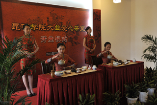 昆明学院大益爱心茶室将定期组织各类爱心公益活动,倡导我校学生培养感恩意识和爱心观念,把学生爱心茶室建成一个集品饮休闲、资讯交流、学术沙龙、爱心互助为一体的校园文化活动场所。
