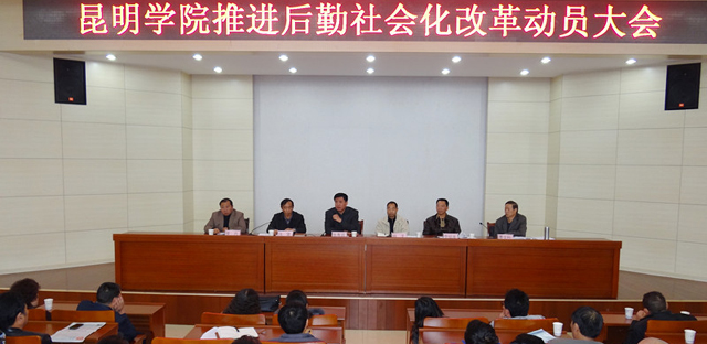 11月30日下午2:30,后勤处在行政楼D区报告厅召开昆明学院推进后勤社会化改革动员大会,学校张寿国副校长出席会议,后勤处全体干部职工参加了会议。会议由后勤处副书记李绍龙主持。