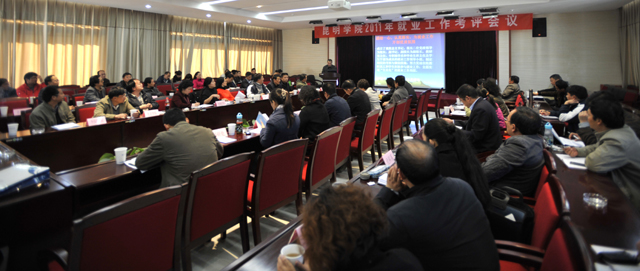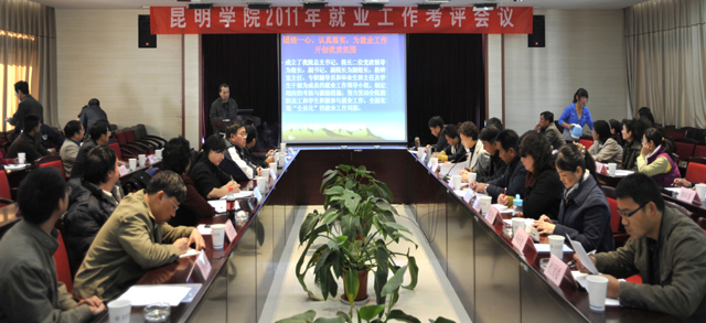 会议由招就处副处长包兴主持。包兴副处长主要阐明了就业工作考评会议的意义及重要性,着重说明了考评的方式和具体要求。各院(系)按照与学校签订的《昆明学院2011年毕业生就业工作目标责任书》的要求,依据会前抽签顺序,以PPT形式汇报2011年就业工作情况。