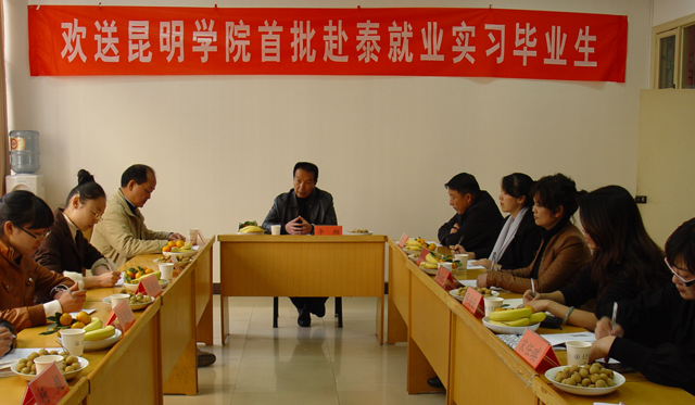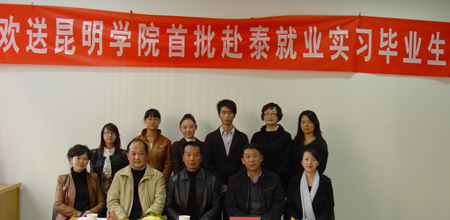 招就处处长包兴和对外交流合作处副处长哈军华介绍说,此次派遣教师教育学院学生赴泰就业实习,是在相关校领导的直接指导下,落实国家桥头堡战略,依托昆明地里优势,开拓海外就业市场,向东南亚输出劳务的第一次尝试。其中,得到了音乐学院、教师教育学院、人文学院、体育学院等许多院系的大力支持;今后,随着我校本科毕业生的增多,该项工作将会长足发展。