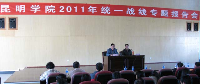 为深入学习贯彻中共云南省委八届九次全会精神,进一步提高我校广大统一战线成员加深对云南“十二五”规划和建设面向西南开放的桥头堡战略的认识,关心云南桥头堡建设和昆明“区域性国际城市”建设,积极参与学校的改革建设和发展,11月17日下午,党委统战部在惟行楼1501报告厅举行了昆明学院2011年统一战线专题报告会,邀请云南省演讲协会常务理事、云南大学马克思主义学院硕士生导师金子强教授作《大规划、大战略——云南“十二五”规划与桥头堡建设》专题报告。各民主党派、无党派人士代表、侨台联合会员代表,各院(系)党总支、直属党支部统战委员以及学生代表共计130余人参加了报告会。党委副书记李媛芬同志出席了报告会。报告会由党委统战部张云权部长主持。