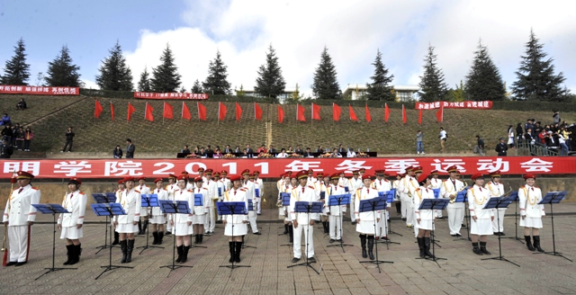 全校师生欢聚校运盛会,竞赛场上尽显健儿雄姿。11月3日上午,昆明学院2011年冬季运动会在洋浦校园田径场隆重开幕。学校党委副书记孙勇、李媛芬,副校长李翔、张寿国、熊晶、罗明东、刘海发、董建华出席开幕式。全校教职工、运动员、裁判员和各院系学生代表参加了开幕式。开幕式由学校党委副书记、组委会副主任李媛芬主持。